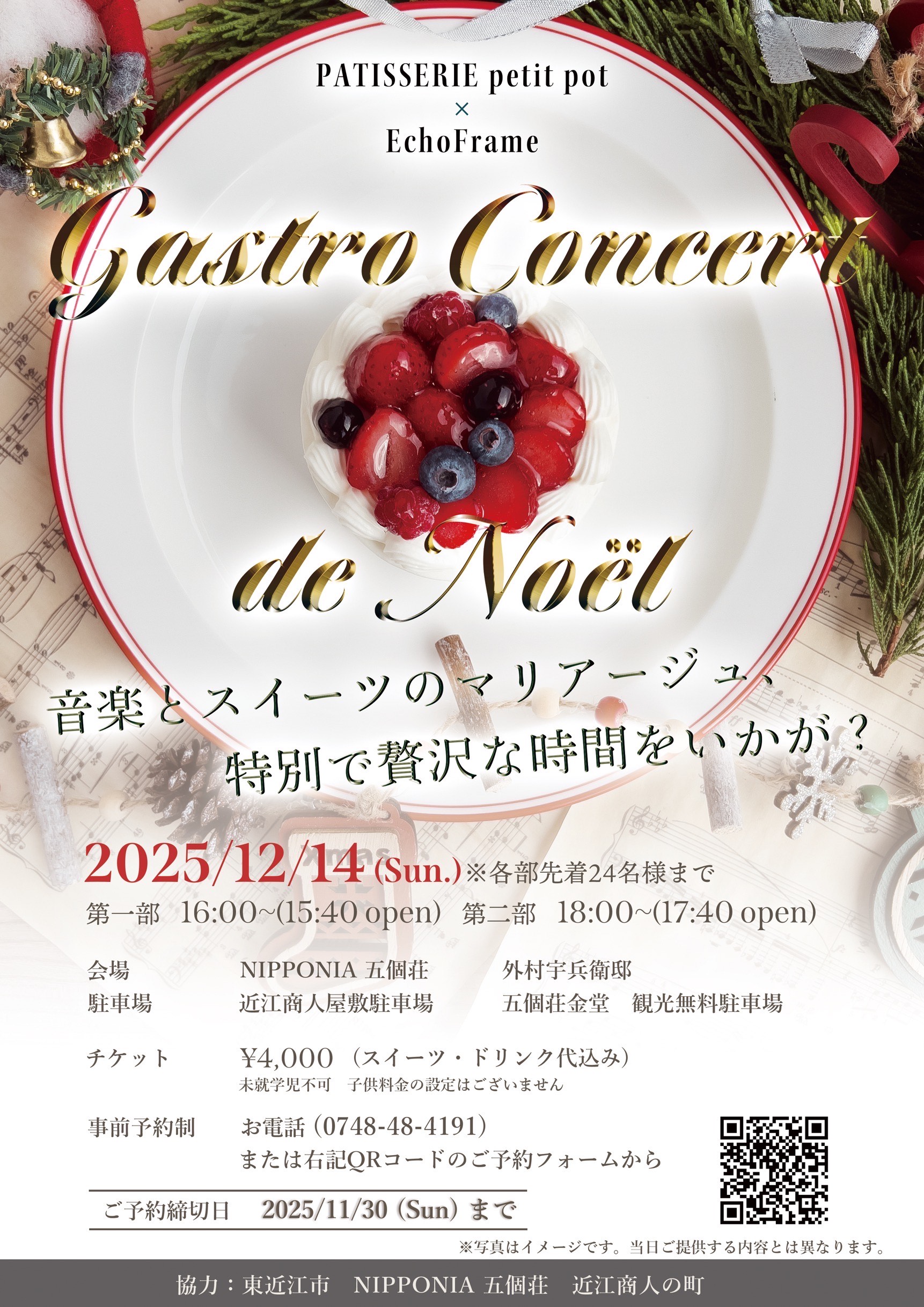 世界各国のクリスマスソングの生演奏とともに、その国のデザートを召し上がっていただく。