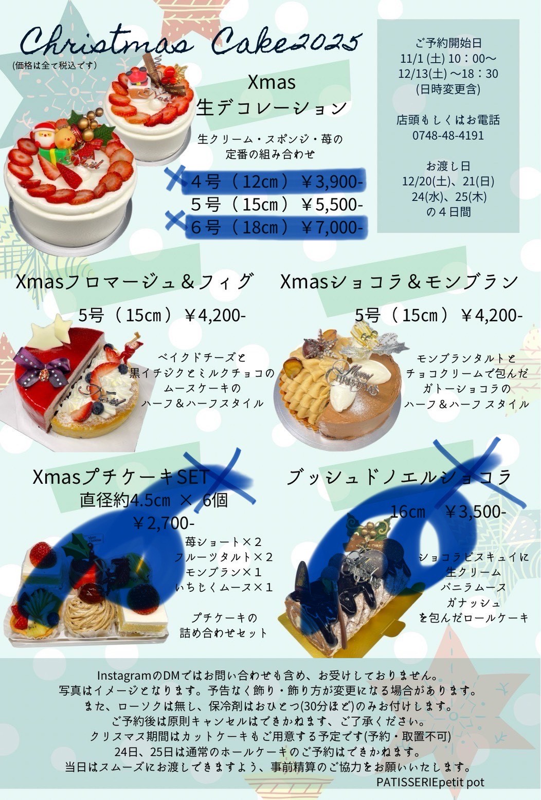 先日に引き続きクリスマスケーキのお知らせです。