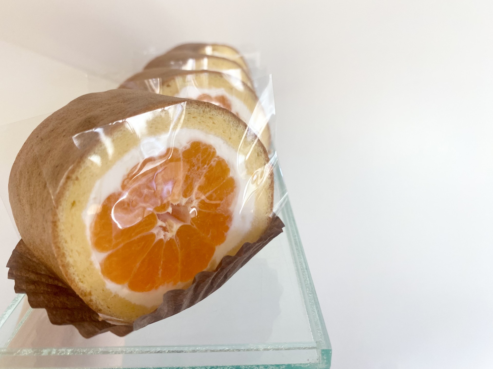 小ぶりで良いサイズのみかんを丸ごとぐるっとスフレロール生地で巻いていて食べ応えばっちりです。